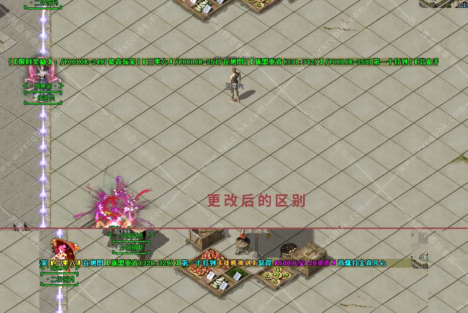 今天有GM论坛的朋友在架设一个翎风引擎的版本时,他设置了打到装备全屏广播,而且用脚本写了不同字体的颜色,比如名字或怪物地图这种特殊标记的用了不一样的颜色,但是测试时打到装备全服喊话时是绿色,以下是脚本。![]() SENDMOVEMSG 0 250 0 220 1 {限时奖励:/FCOLOR=249}恭喜玩家{『<$USERNAME>』/FCOLOR=251}在地图{【%m(%x:%y)】/FCOLOR=250}第一个打到{〖<$GLOBAL(奖励首爆名称3)>〗/FCOLOR=243}获得{『<$GLOBAL(奖励首爆金额3)><$GLOBAL(奖励首爆单位3)>+<$GLOBAL(奖励额外金额3)><$GLOBAL(奖励额外单位3)>』/FCOLOR=253}首爆真开心。 刚开始以为是脚本中漏掉了{和}这2个符号,这个也是平常GM比较容易忽略的问题,脚本有时候少一个字符都会出问题,经检查后没有漏符号,可能是版本是从其它引擎转换成翎风的,所以脚本语法错误,把FCOLOR换成SCOLOR就可以了。 |